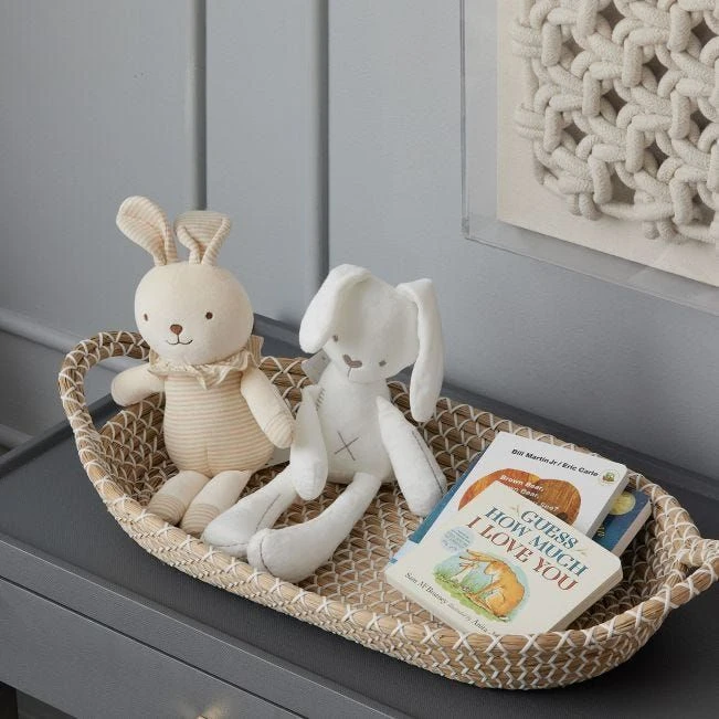 The Kendari Basket Set in Low from Pigeon and Poodle is handmade from coils of natural seagrass and crisscrossed strips of white seagrass. Consider using this versatile set to contain all your necessities in entryways, living spaces, and bedrooms alike.