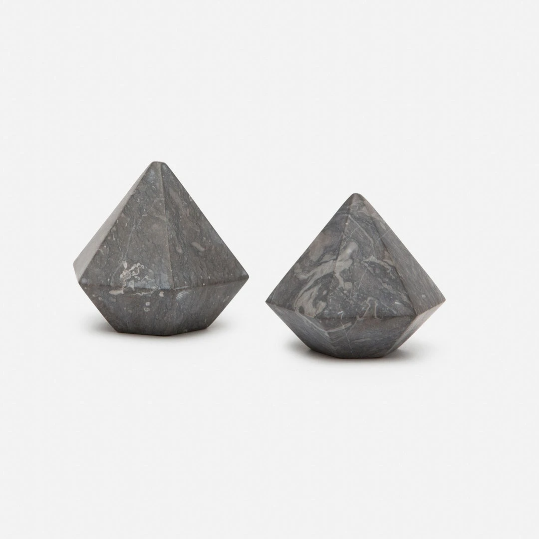 The Kempsey Paperweight Set Black Doff Marble from Pigeon and Poodle delivers a contemporary touch of style to your bookshelves, desktop, and table surfaces. These diamond-shaped stone shapes work perfectly as paperweights, bookends, or an artful point of visual interest. *Set of Two