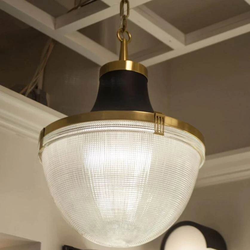 | Materials | Brass; 1-150W Max; Bulb Type: A; Direct Wire; Clear Halophane Glass Diffuser Susp. Hardware: 3ft of Chain |