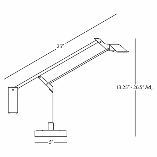| Dimensions | 13.25" – 26.5" High (Adjustable) x 6" Base x 25" Arm |