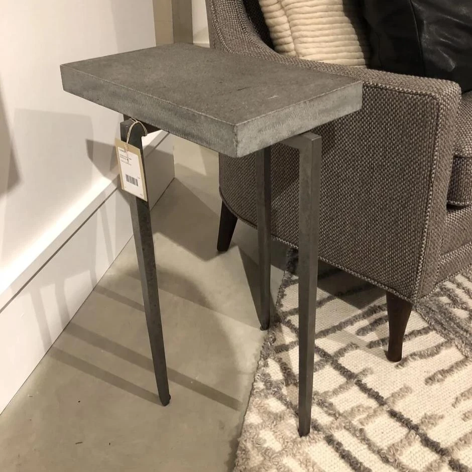 The Laforge Accent Table from Studio A is showcased in a natural iron. The natural iron works perfect juxtapose the flamed granite top. This side table is a simplistic design but offers a unique edge with its tapered legs. Tables such as the Laforge Accent Table from Studio A work great in the living room, bedroom room, or foyer.