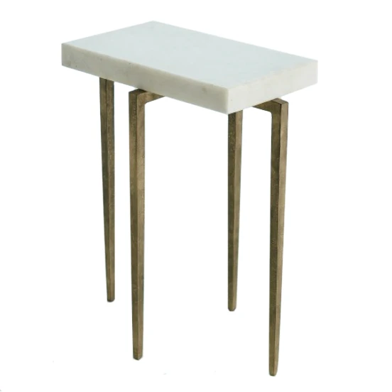 The Laforge Accent Table from Studio A comes in an antique gold finish.  The tapered legs add a unique touch while the marble top offers an unexcpected elegance to this side table.  Tables such as the Laforge Accent Table from Studio A make the perfect accent in any space.