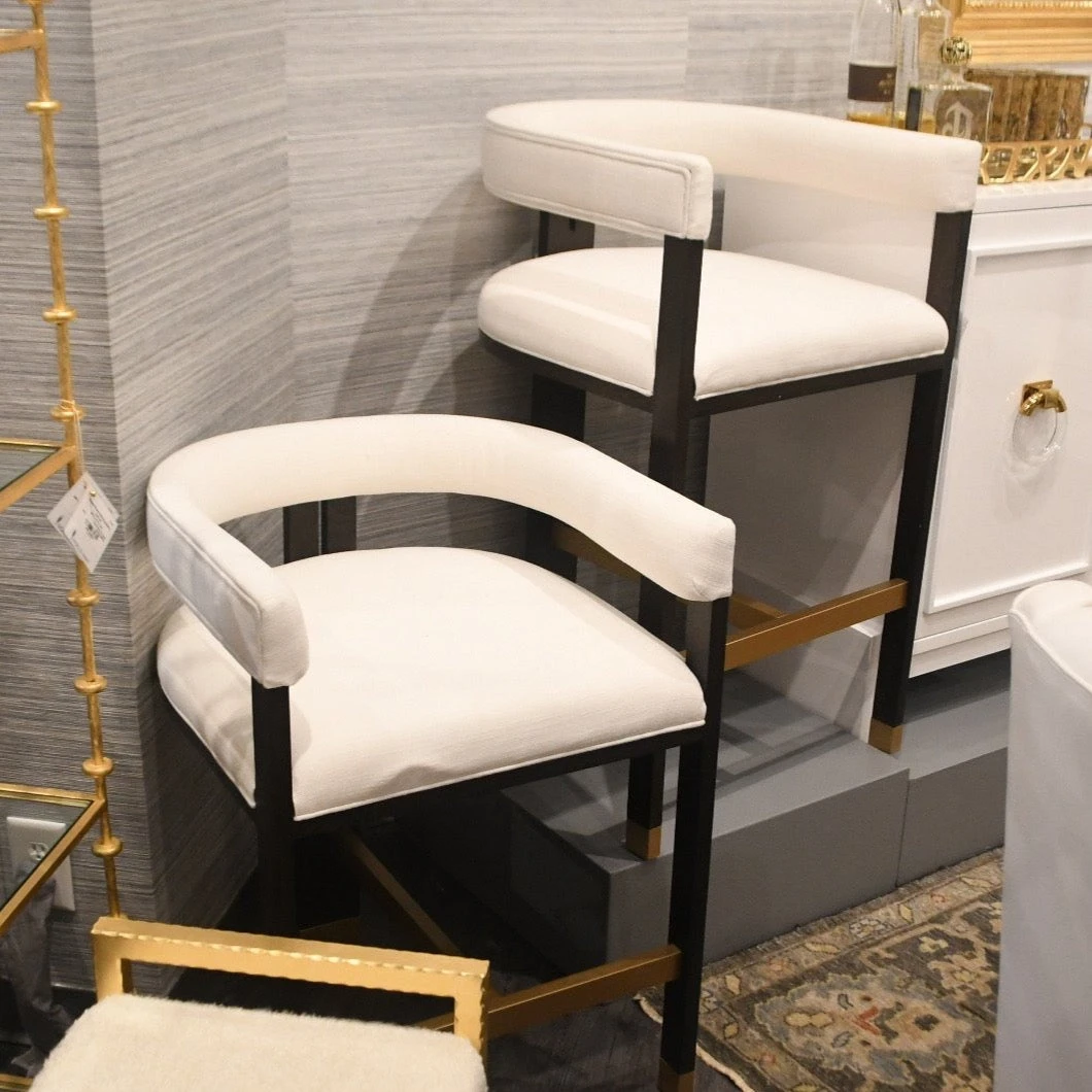 The Worlds Away Cruise Counter Stool offers contemporary seating for a bold and contemporary style statement for your home. Visually striking in a kitchen or home bar, this curvy seat catches the eye with a wooden frame, while a white linen cushion provides soft comfort. Â