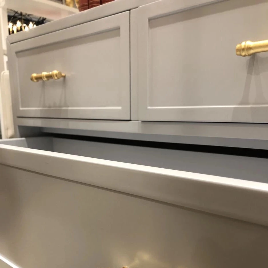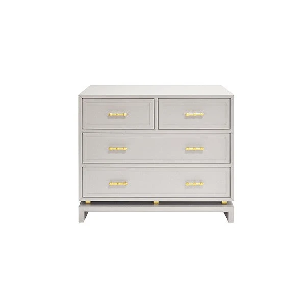 The Declan Chest from Worlds Away features ample storage with its four drawers. The contemporary hardware is featured in a warm brass finish. Place the stylish lacquered wood Declan in the bedroom, dining room or home office to stay organized in style.
