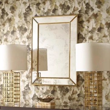 The Worlds Away Dion Gold Leaf Mirror features a luxe antiqued mirrored frame designed in a rectangle. Decorative mirrors like the Dion with its gold leafed wood edges create an opulent metallic and vintage style to create Hollywood glamour in your home. Mirrors like the Dion Gold Leaf Mirror from Worlds Away beg to be noticed, making them a perfect fit over a console in the foyer, over a buffet in the dining room or over a vanity in the powder room of your home!