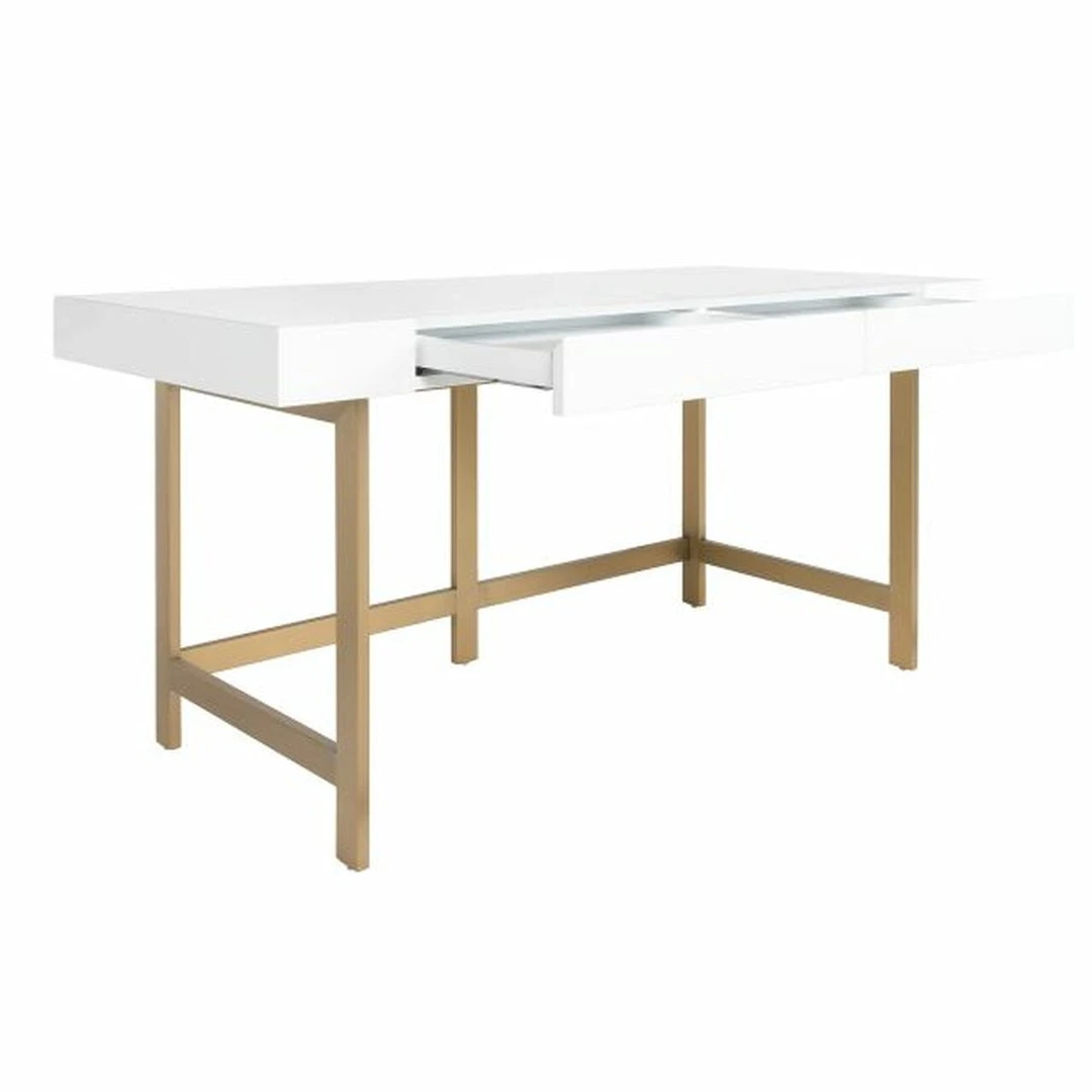 In need of the perfect desk for your office or workspace? Look no further than the classic Boone Desk in White from Worlds Away. With two spacious drawers, an elegant brushed brass base, and a glossy white lacquered top, you’ll have the space and style you need to stay focused and productive.*Wood has natural variations and may differ slightly between panels. Two Person Assembly Required; Instructions Provided; White Glove Shipping Charges May Apply