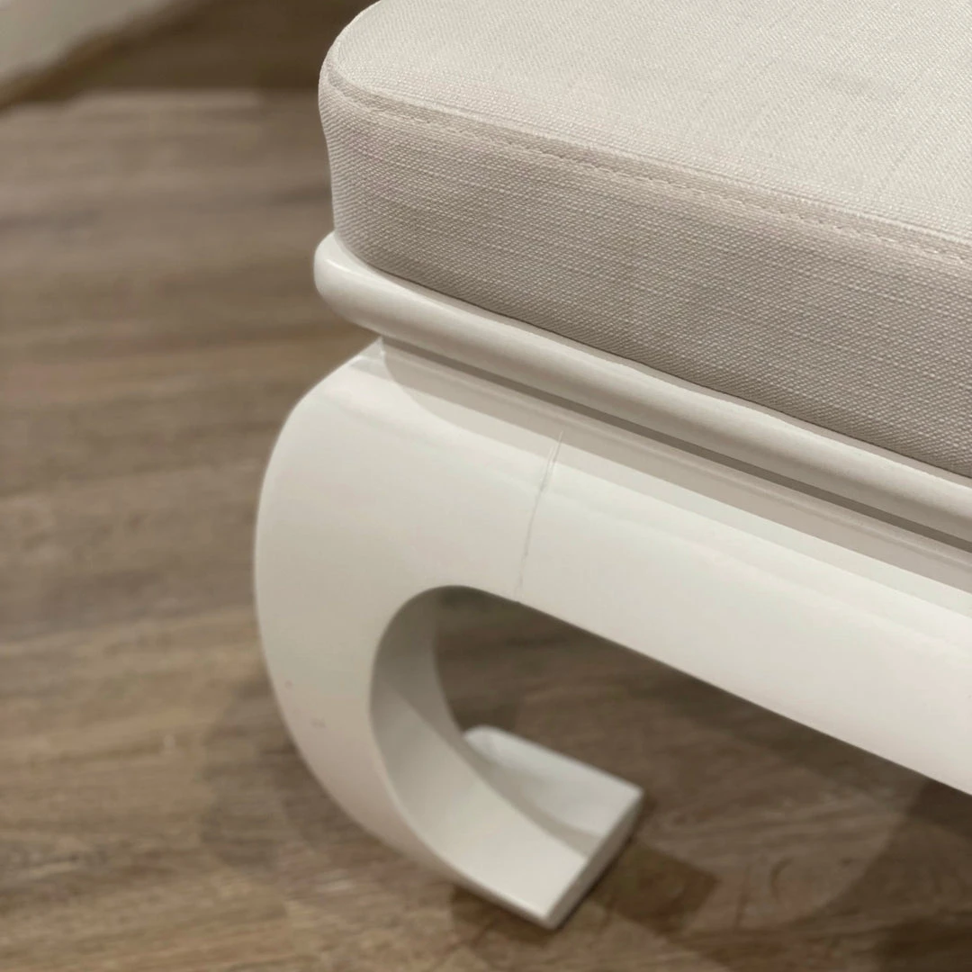 A modern spin on Chippendale, the Ernest Bench in White from Worlds Away showcases this lovely pagoda-style piece. The gracefully curved chow base finished in matte white, couples harmoniously with a structured white linen seat cushion. The Ernest bench makes a lovely addition to any seating area.