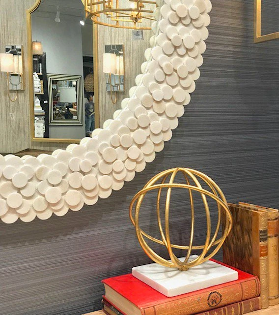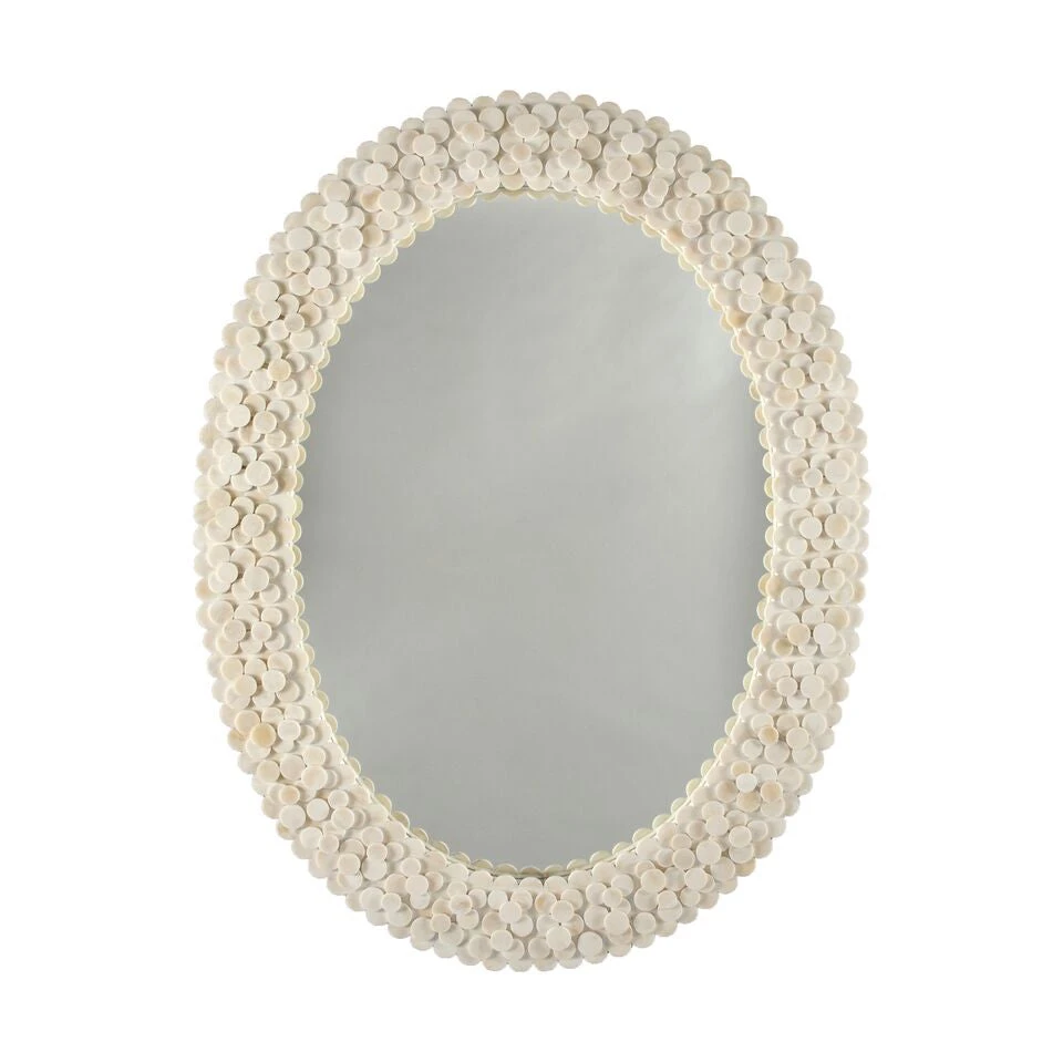 The Worlds Away Heather Oval Wall Mirror showcases a frame created with layers of circular bone pieces. Unique mirrors like this one by Worlds Away add a natural glamour to rooms throughout the home. Placed over a dining room buffet, console, or vanity, the contemporary Heather Oval Wall Mirror from Worlds Away is an ideal choice for making a sophisticated statement!