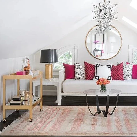 The Worlds Away Roland Bar Cart features a gold leaf metal frame with a mirrored top and lower shelf. This movable beverage table provides glamorous storage for glasses and bottles and is ideal for any modern or traditional decor style. Entertain your guest with dazzling panache with the Roland Bar Cart from Worlds Away!