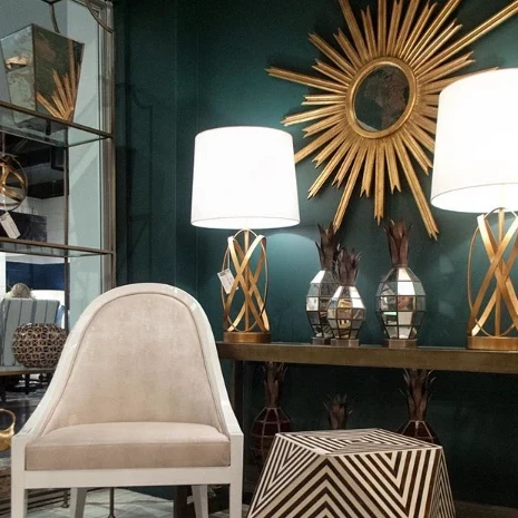 The Worlds Away Starlata Mirror reflects a gold leaf starburst design carved from wood and accented with an antique mirror inset. Mirrors like this showstopper bring a glamorous vibe to modern, contemporary decor! The beautiful Starlata Mirror from Worlds Away can be placed anywhere in the home from the foyer to the master suite.