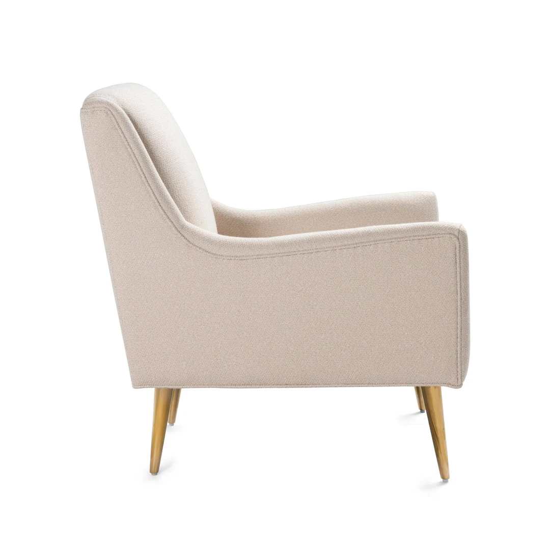 The Worlds Away Wrenn Chair in Natural and Brass features plush upholstery with brass metal legs. The Wrenn is inspired by contemporary style and is perfectly paired with an equally sleek design. The Wrenn Chair is a beautiful mix of comfort, functionality, and luxury and is ideal seating for your den, bedroom, home office or living room. *Upholstery is foam fill and spot cleaning is recommended.