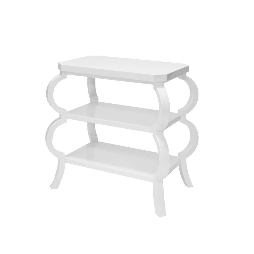 The Olive Side Table from Worlds Away is presented in a chic white finish bringing style and functionality to any room in your home. The Olive offers a three shelf design making this accent table as functional as it is beautiful. Side tables like the Olive from Worlds Away work well in living spaces, bedrooms and home offices.